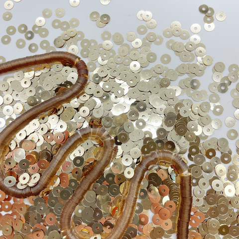 शैंपेन गोल्ड कॉउचर कढ़ाई 4 मिमी राउंड फ्रैंच अनुक्रमों, ओक-टेक्स और ग्रास प्रमाणित गुणवत्ता